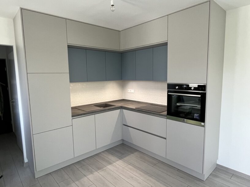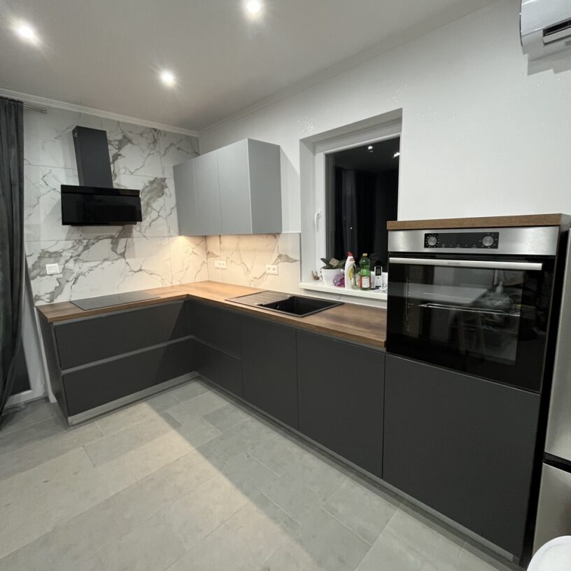 Kis L Alakú Konyha KonyhaBy molnardanielpatrik2025.03.09.NETTFRONT Front Panel, Cool Grey matt és Fume matt fronttal. LUXEFORM Sherwood munkalappal.
