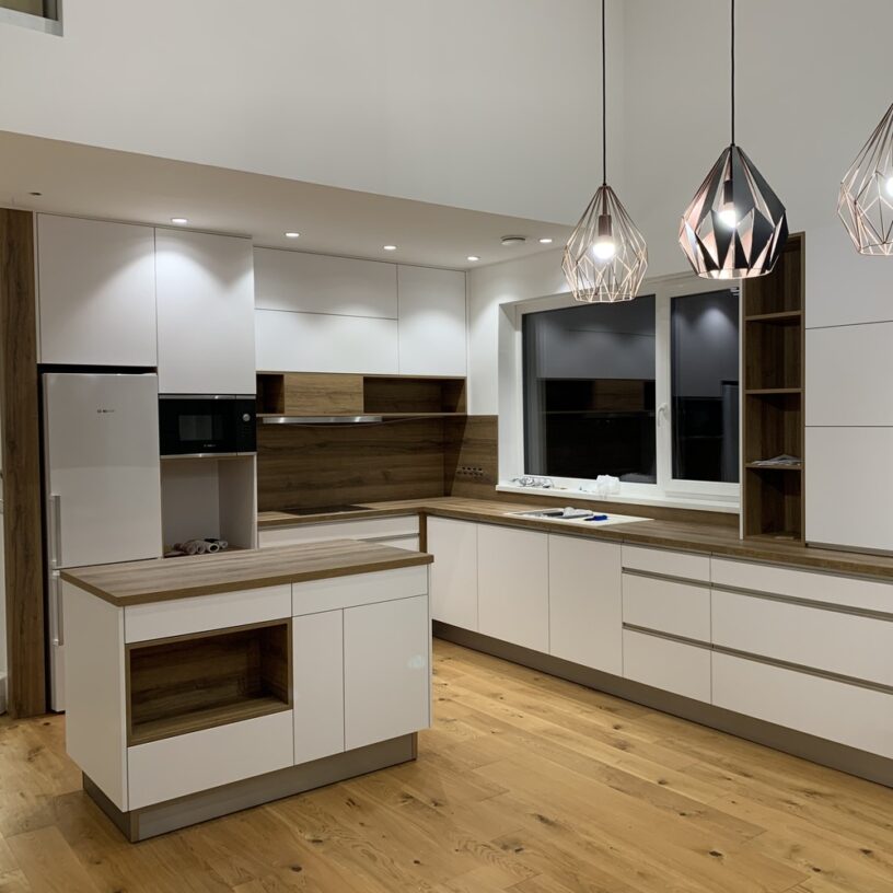 Munkalappal Színazonos Falburkolattal KonyhaBy molnardanielpatrik2025.03.09.Beépített mosogatógéppel, hűtővel, sütővel, főzőlappal, mikrohullámú sütővel és elszívóval.