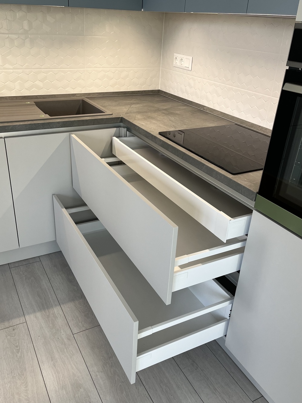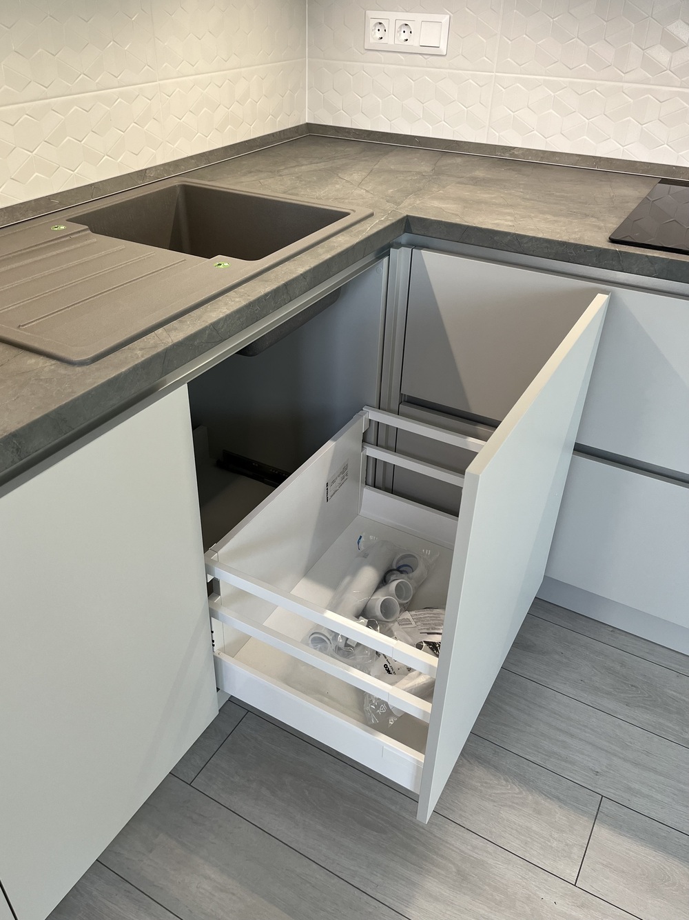 Korpuszba épített GOLA fogantyú profillal, szemetes tárolására